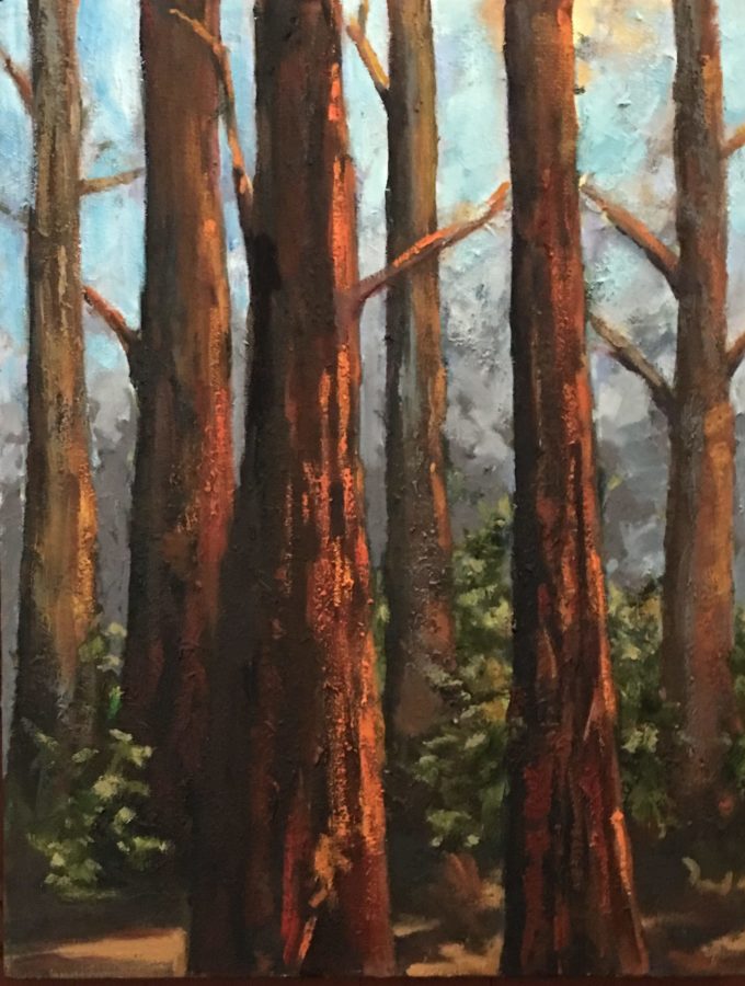 “Memories Of Muir Woods”- Sunlight Peeking Through The Canopy Oil/Canvas 16 x 12 SOLD