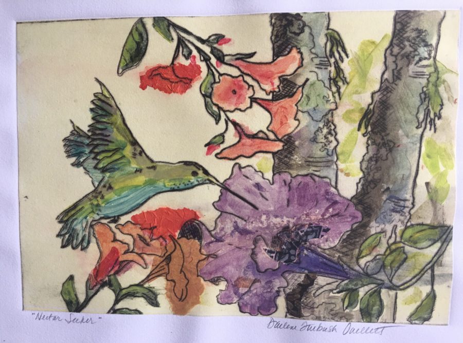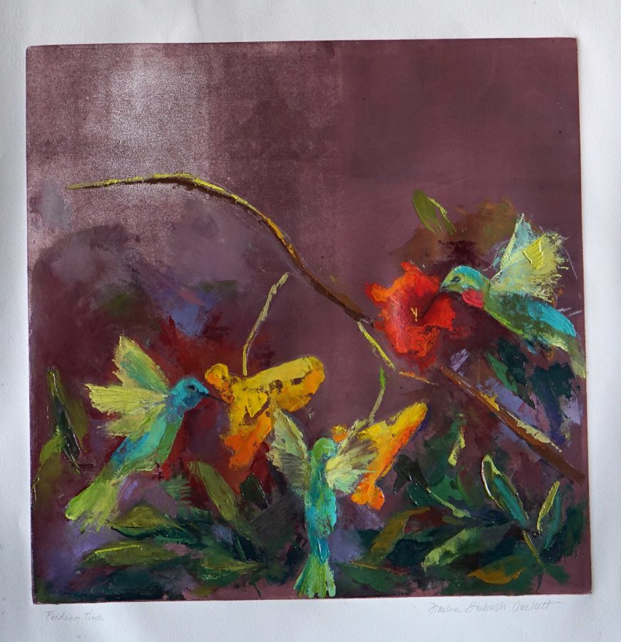 “Hummingbird Feeding On Nectar”- Printmaking-Chine colle’ 12 x 16