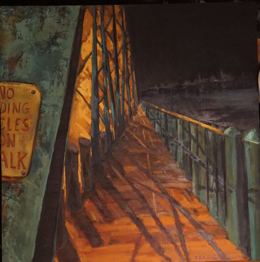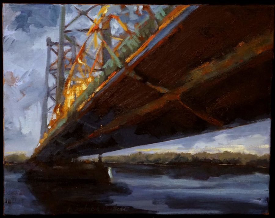 “Evening Lights And Shadows On The Old Memorial Bridge”- Portsmouth NH – Kittery ME Oil On Canvas 48 x 48