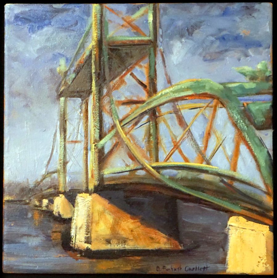 “Back Channel Looking Toward Portsmouth” , NH – Under New Castle Bridge Oil On Canvas 14 x 14